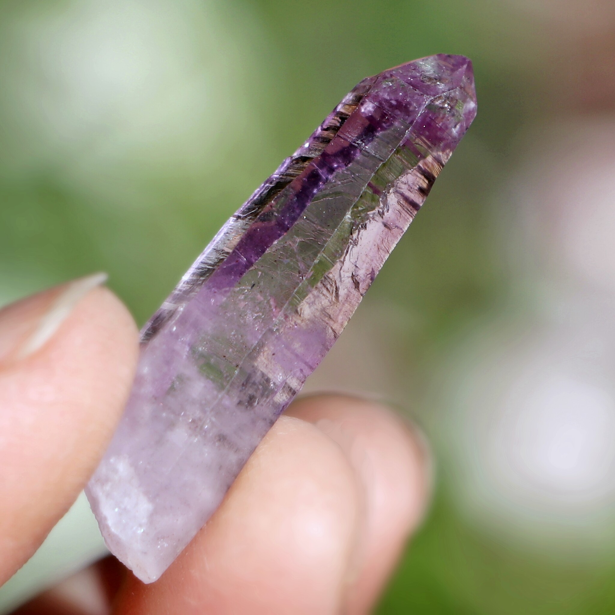 オーラの曇りを除く。平和・落ち着きを与える。瞑想に良い。決断に柔軟性を持たせる。非生産的で意地の悪い波動を解消する。ビジネスの繁栄の助けに。新しい考えをまとめる時に使う。アメシストの構造に愛を向けるとき、そのエネルギーは増幅され、置かれた場所に放たれる。