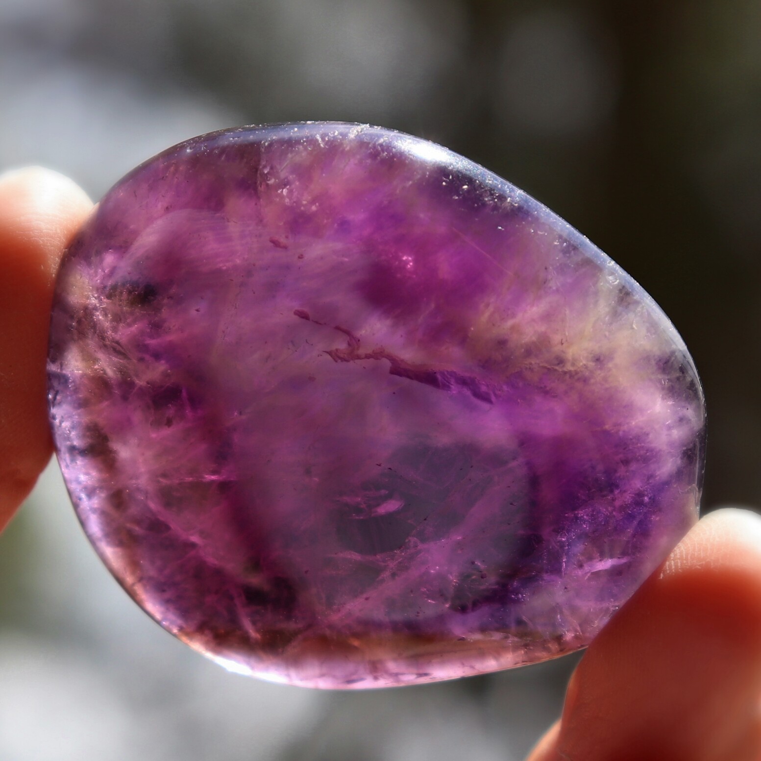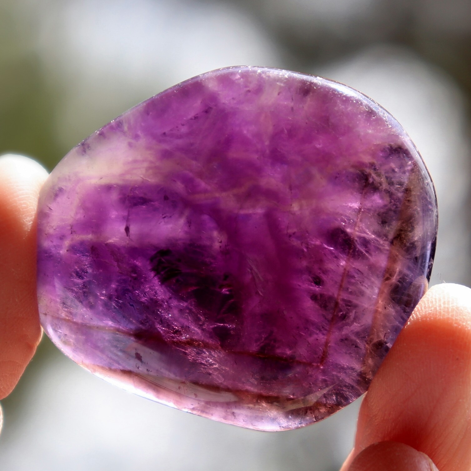 オーラの曇りを除く。平和・落ち着きを与える。瞑想に良い。決断に柔軟性を持たせる。非生産的で意地の悪い波動を解消する。ビジネスの繁栄の助けに。新しい考えをまとめる時に使う。アメシストの構造に愛を向けるとき、そのエネルギーは増幅され、置かれた場所に放たれる。