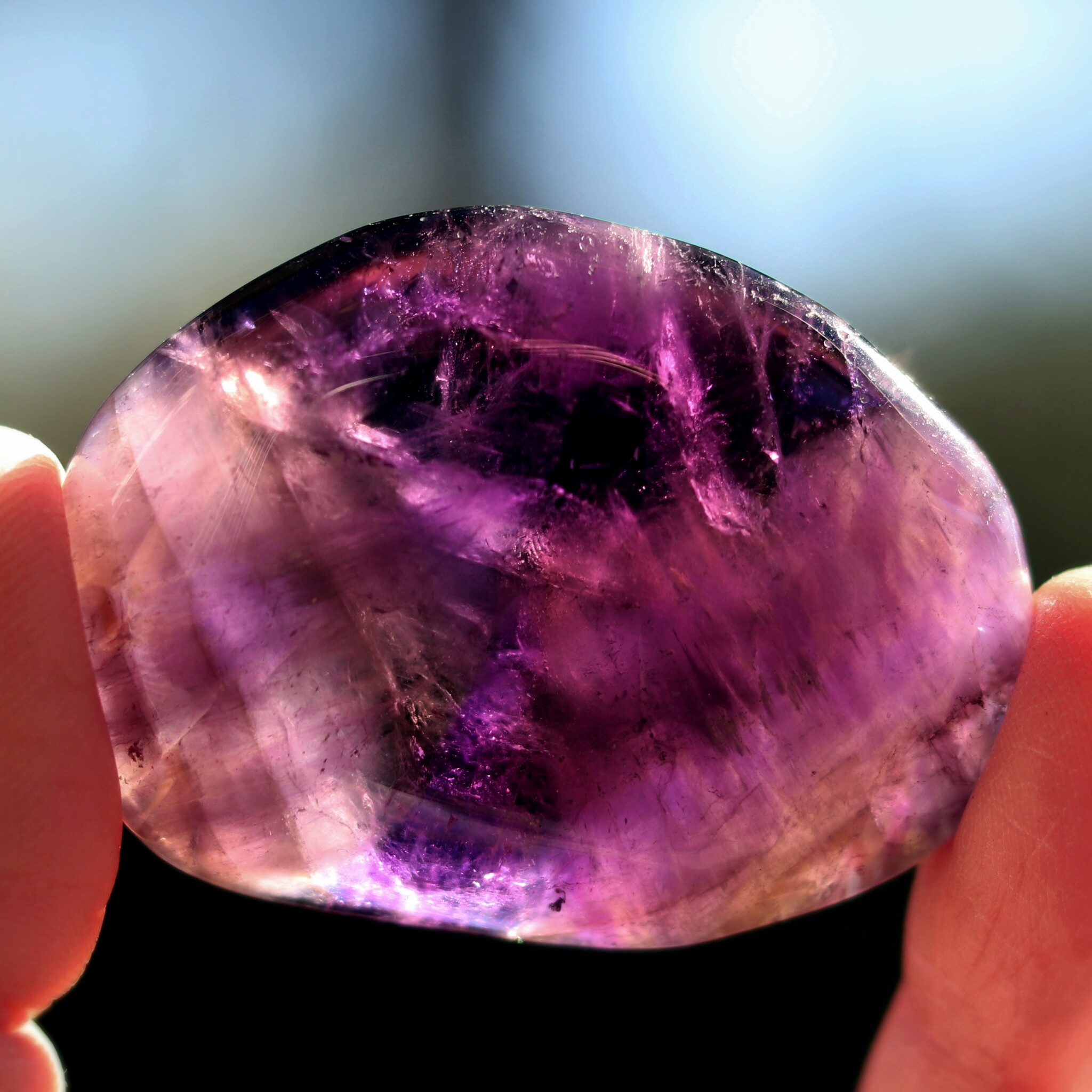 オーラの曇りを除く。平和・落ち着きを与える。瞑想に良い。決断に柔軟性を持たせる。非生産的で意地の悪い波動を解消する。ビジネスの繁栄の助けに。新しい考えをまとめる時に使う。アメシストの構造に愛を向けるとき、そのエネルギーは増幅され、置かれた場所に放たれる。
