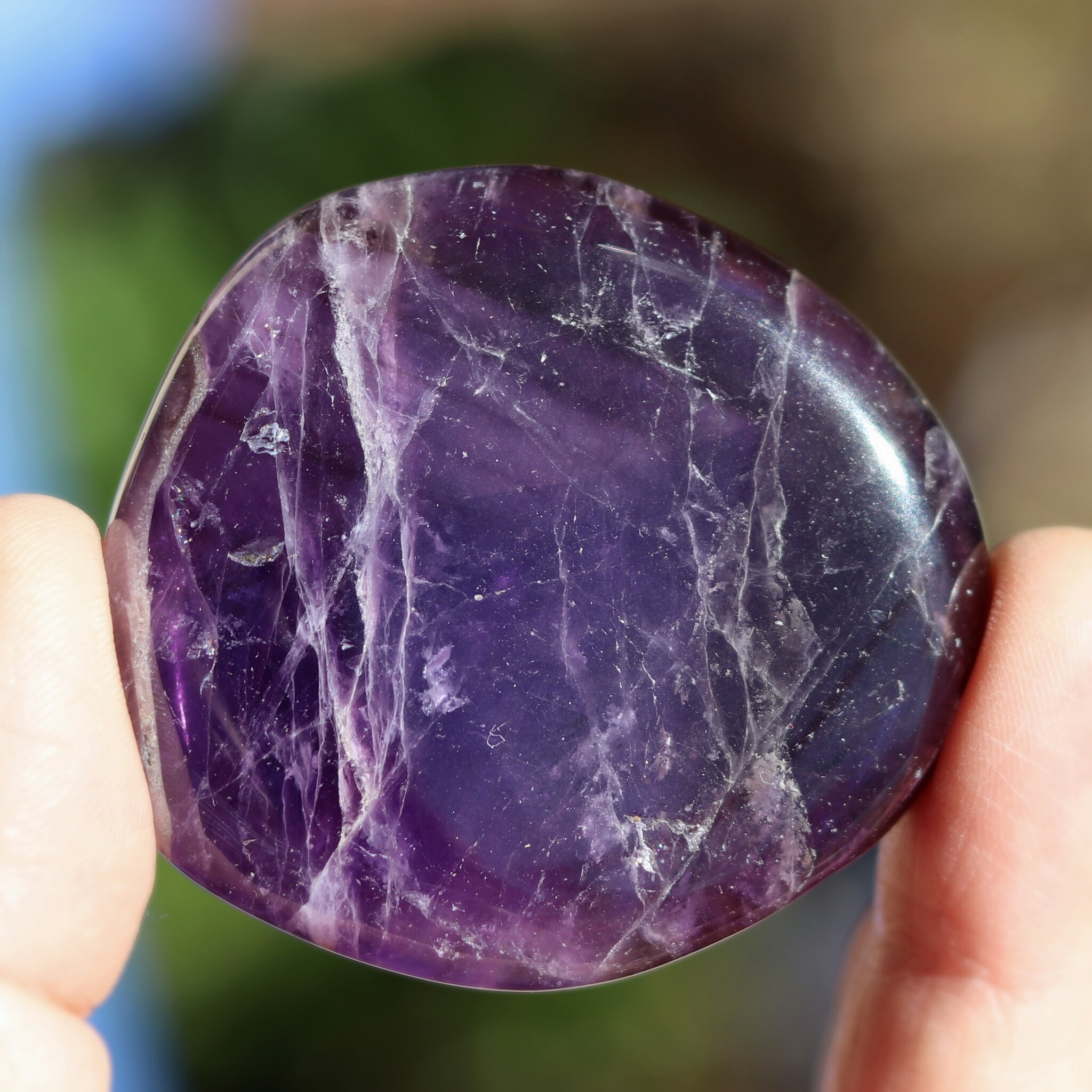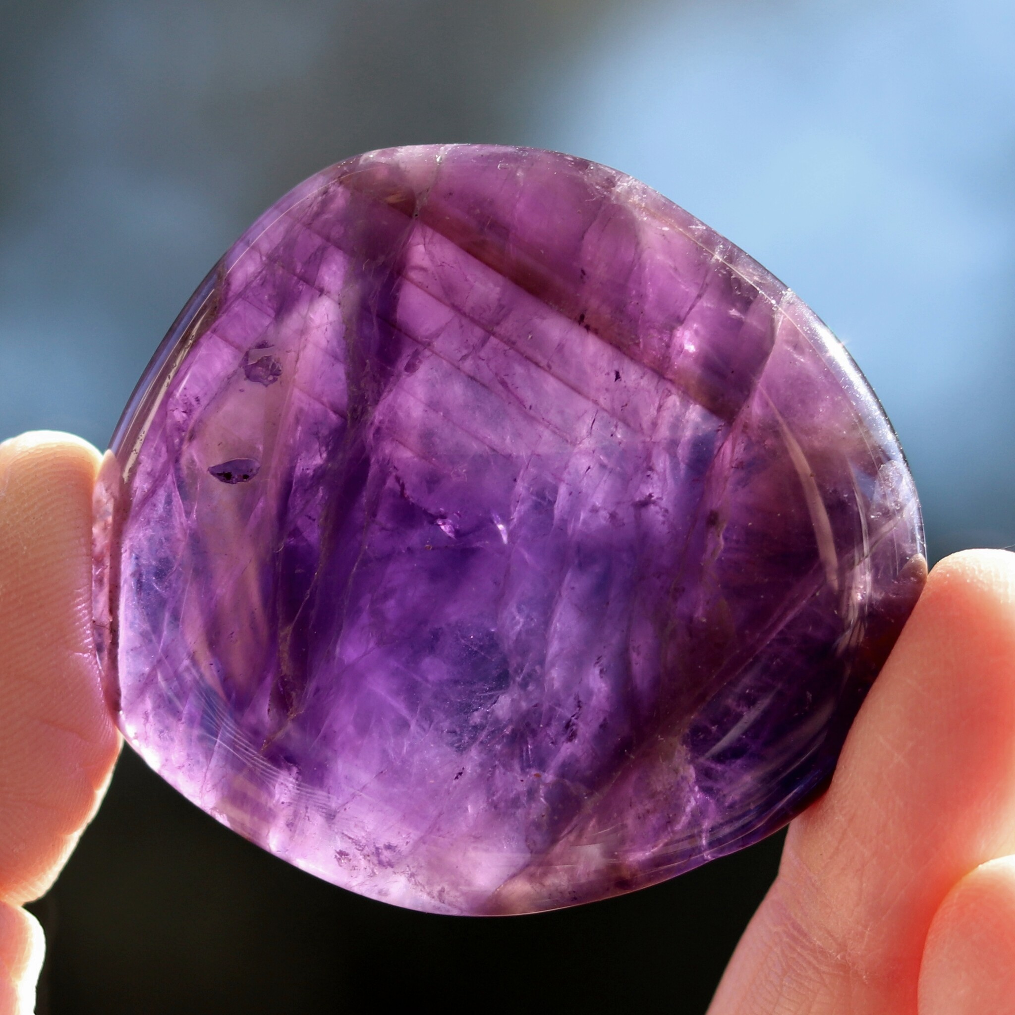 オーラの曇りを除く。平和・落ち着きを与える。瞑想に良い。決断に柔軟性を持たせる。非生産的で意地の悪い波動を解消する。ビジネスの繁栄の助けに。新しい考えをまとめる時に使う。アメシストの構造に愛を向けるとき、そのエネルギーは増幅され、置かれた場所に放たれる。