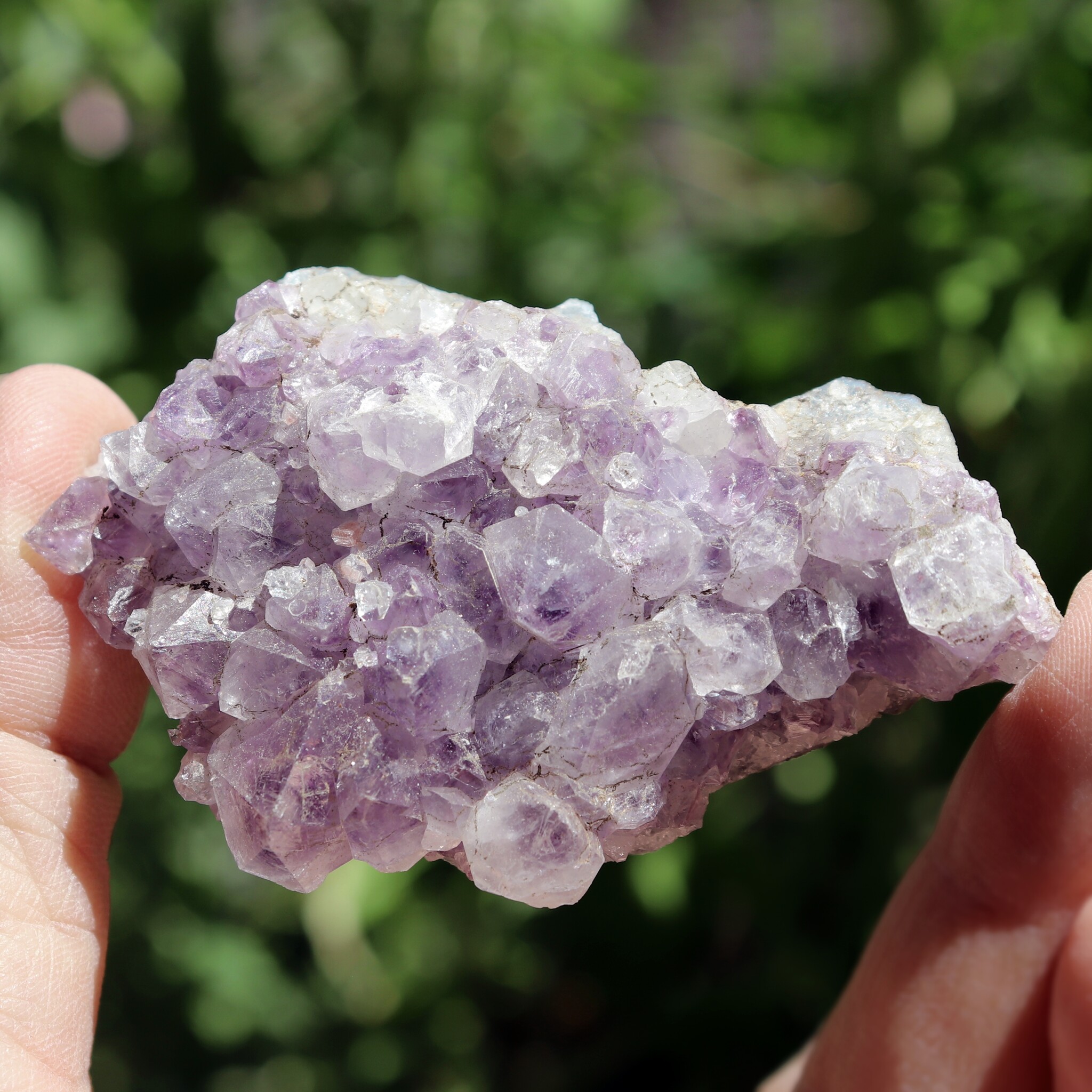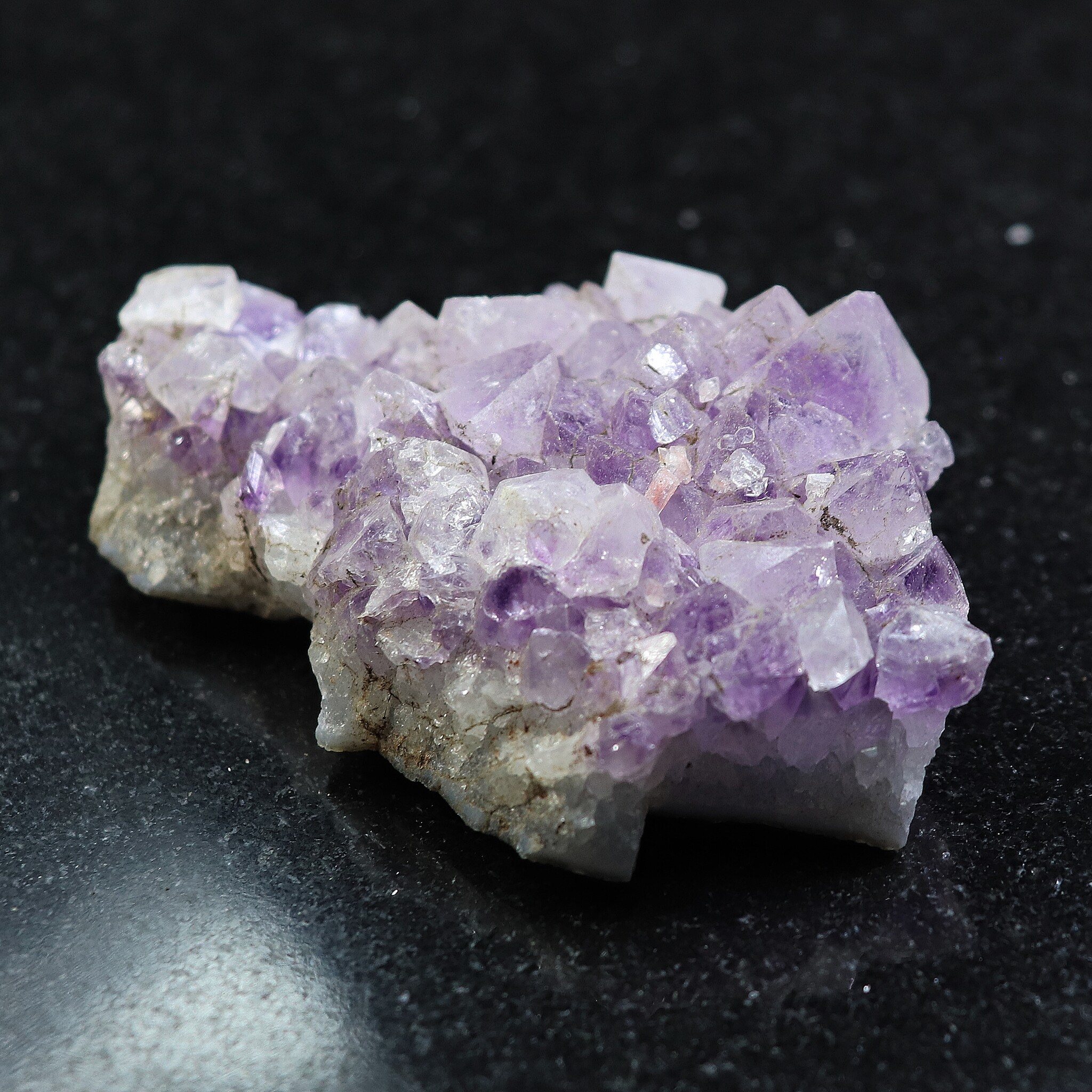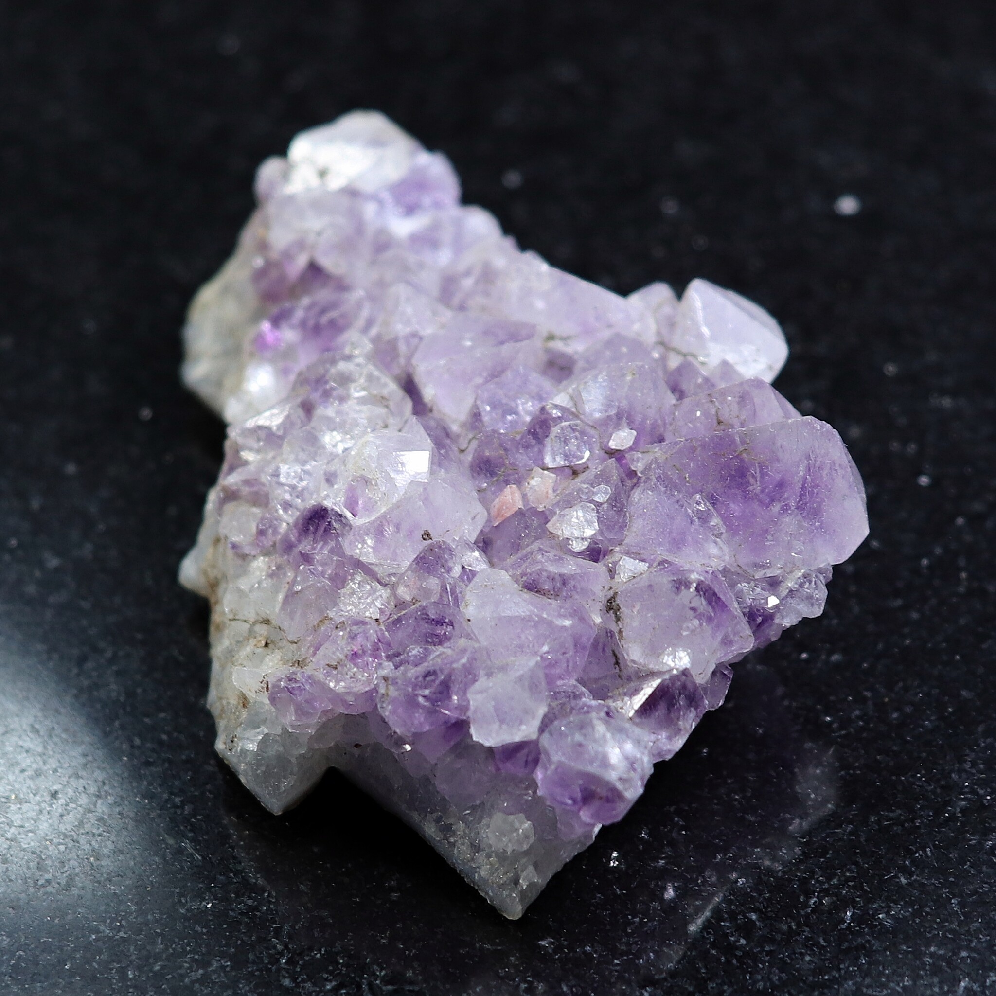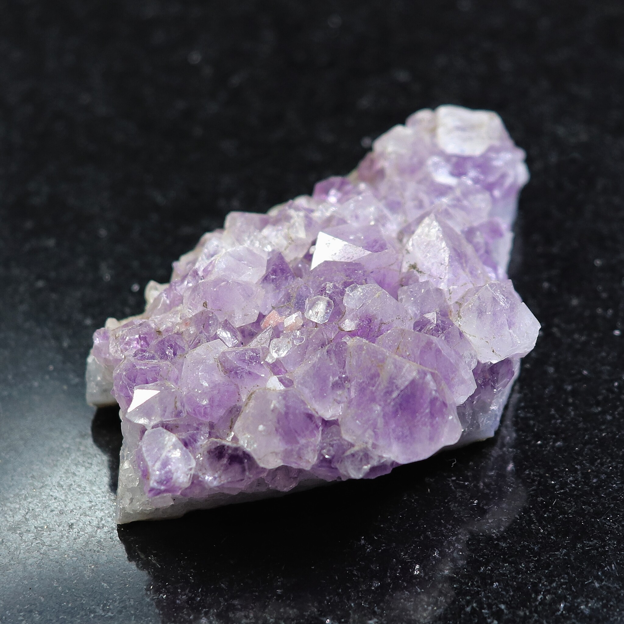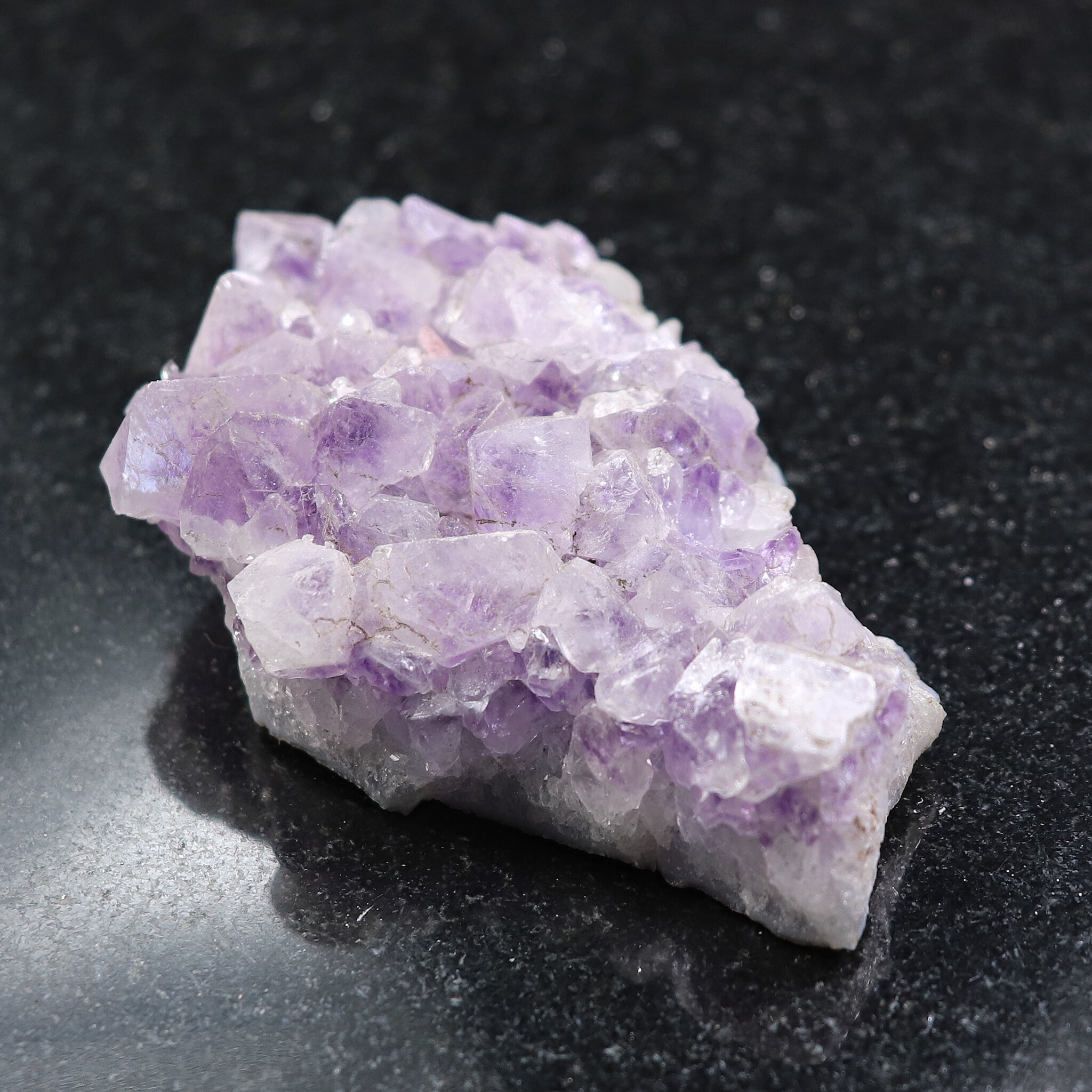 オーラの曇りを除く。平和・落ち着きを与える。瞑想に良い。決断に柔軟性を持たせる。非生産的で意地の悪い波動を解消する。ビジネスの繁栄の助けに。新しい考えをまとめる時に使う。アメシストの構造に愛を向けるとき、そのエネルギーは増幅され、置かれた場所に放たれる。