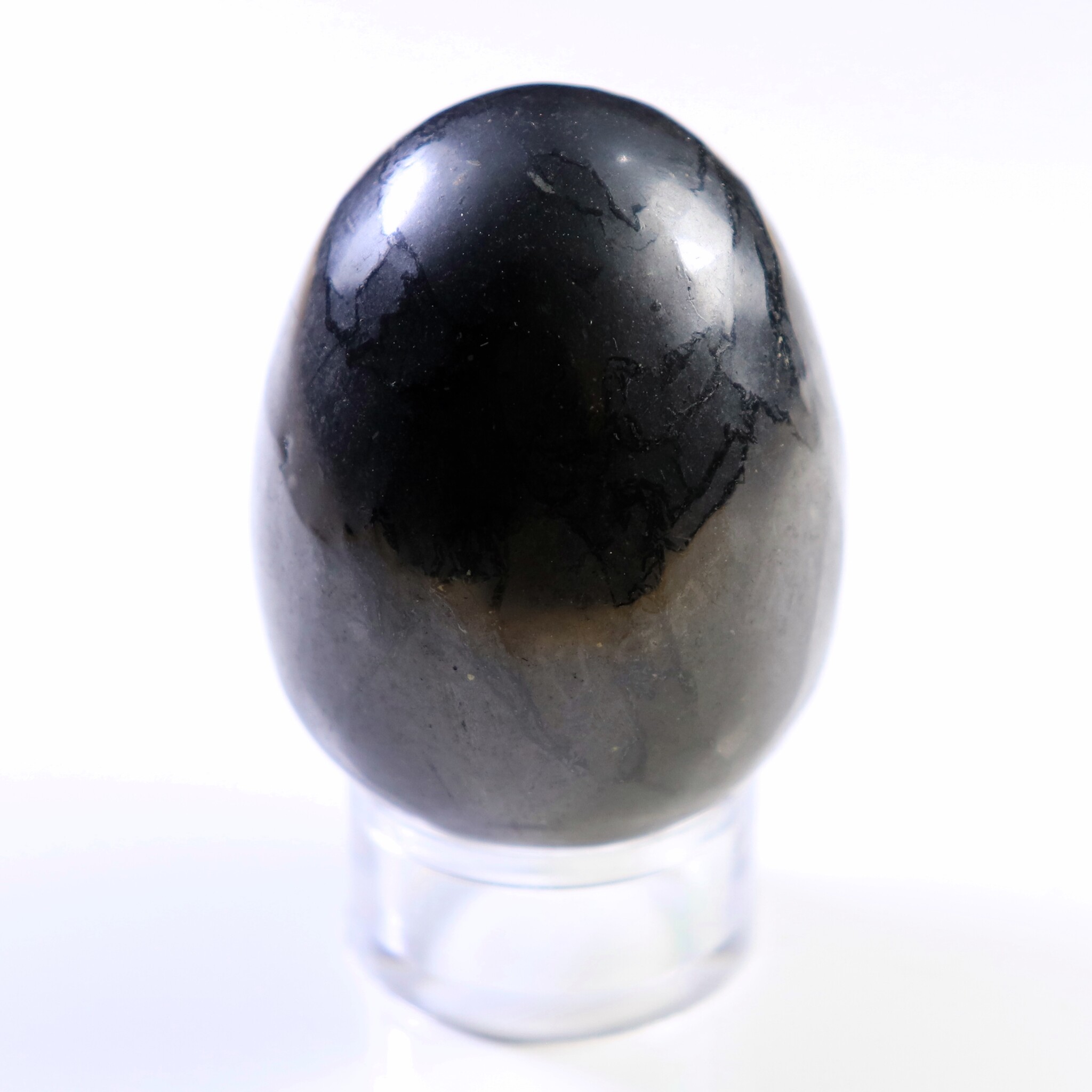 炭素を含みますので、原石はもちろんですが、研磨品でも初めの頃は手が黒くなることがあります。ご注意ください。
