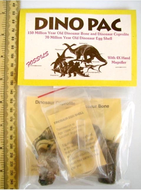 DINO 恐竜セット それぞれのパッケージに、恐竜の骨(1.5億年前)、コプロライト(糞石、1.5億年前)、たまごの殻(7000万年前)が? … 商品記号番号: DINO 在庫数: 3 800円 数量 カートに入れる Description それぞれのパッケージに、恐竜の骨(1.5億年前)、コプロライト(糞石、1.5億年前)、たまごの殻(7000万年前)が入っています。小さなインフォメーションカード(英文)と虫めがねつきです。庭に埋めて、宝探しの大好きなちびっこや、未来の古生物学者さんに掘り出してもらってはいかがでしょうか。