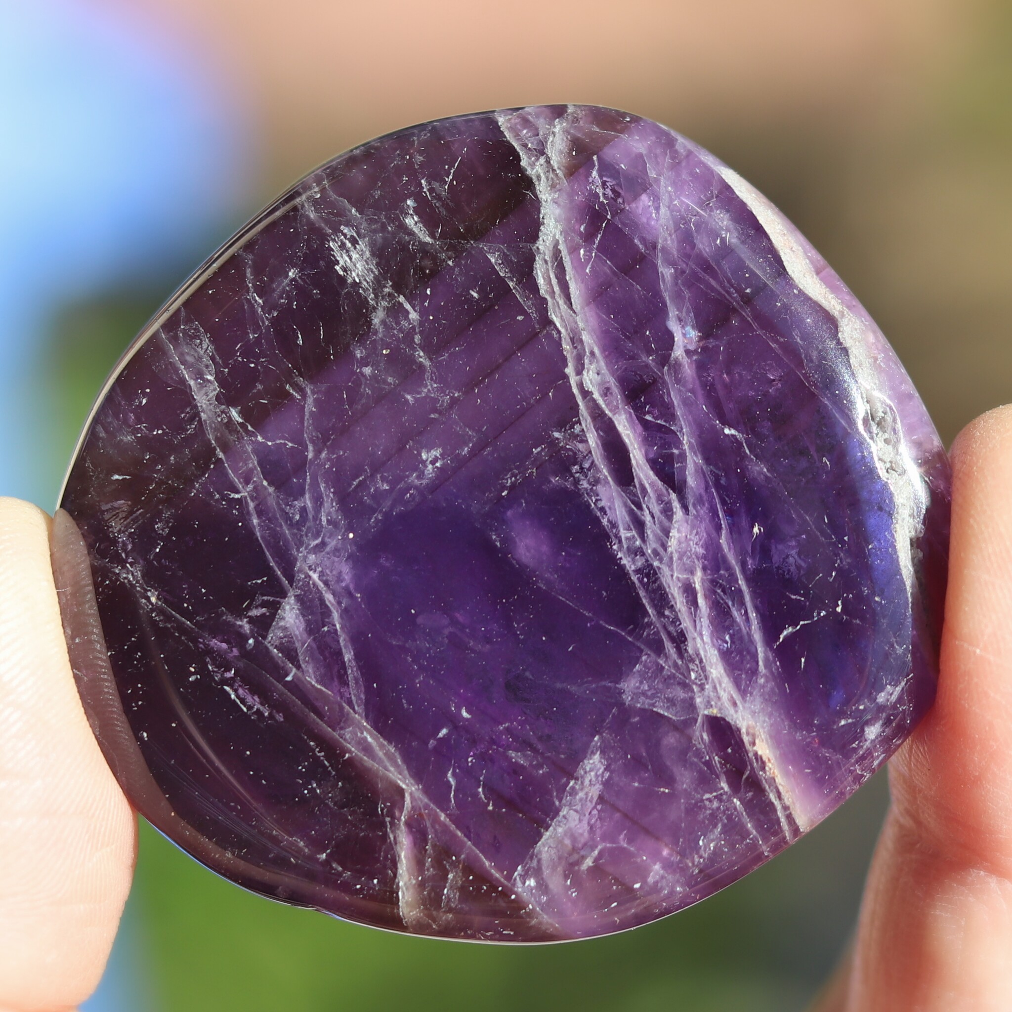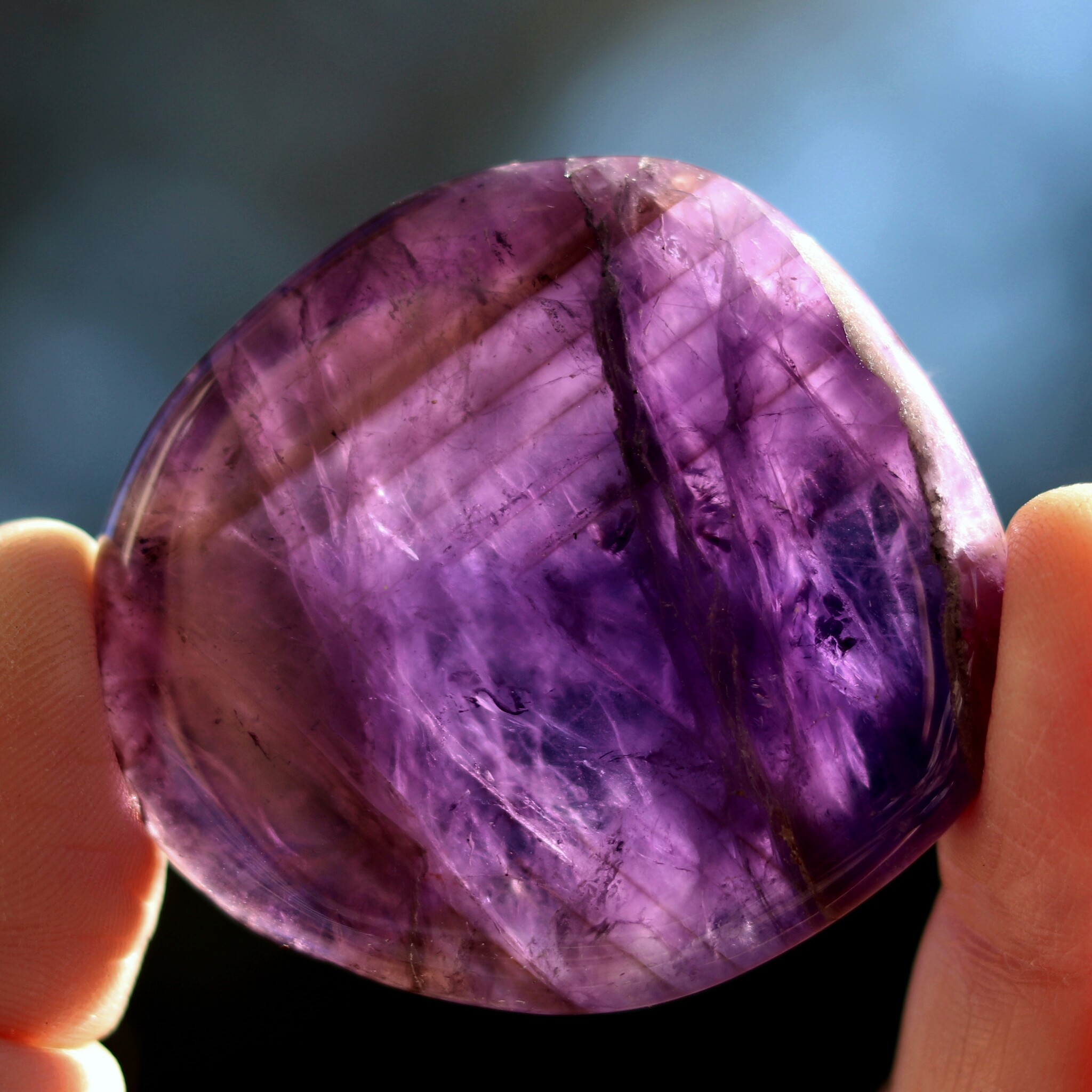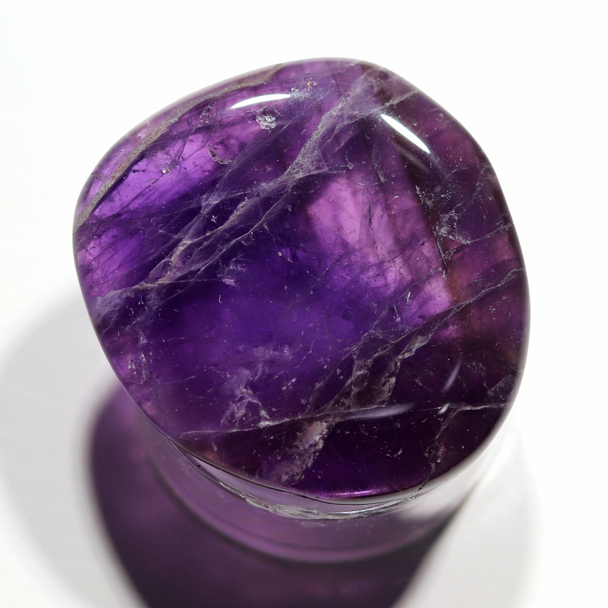 オーラの曇りを除く。平和・落ち着きを与える。瞑想に良い。決断に柔軟性を持たせる。非生産的で意地の悪い波動を解消する。ビジネスの繁栄の助けに。新しい考えをまとめる時に使う。アメシストの構造に愛を向けるとき、そのエネルギーは増幅され、置かれた場所に放たれる。