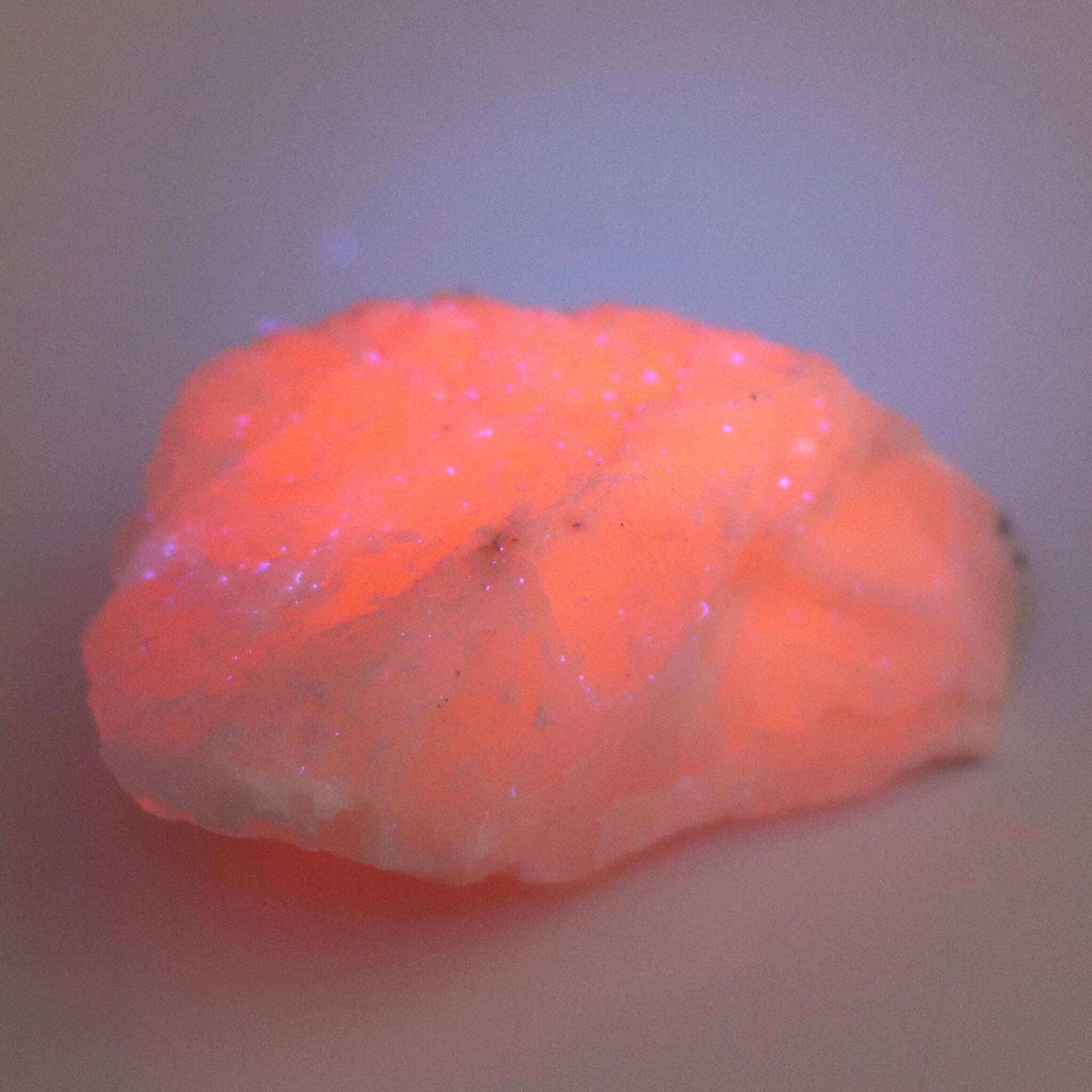 ブラックライト(360mn)下で鮮やかなオレンジピンクに蛍光します。