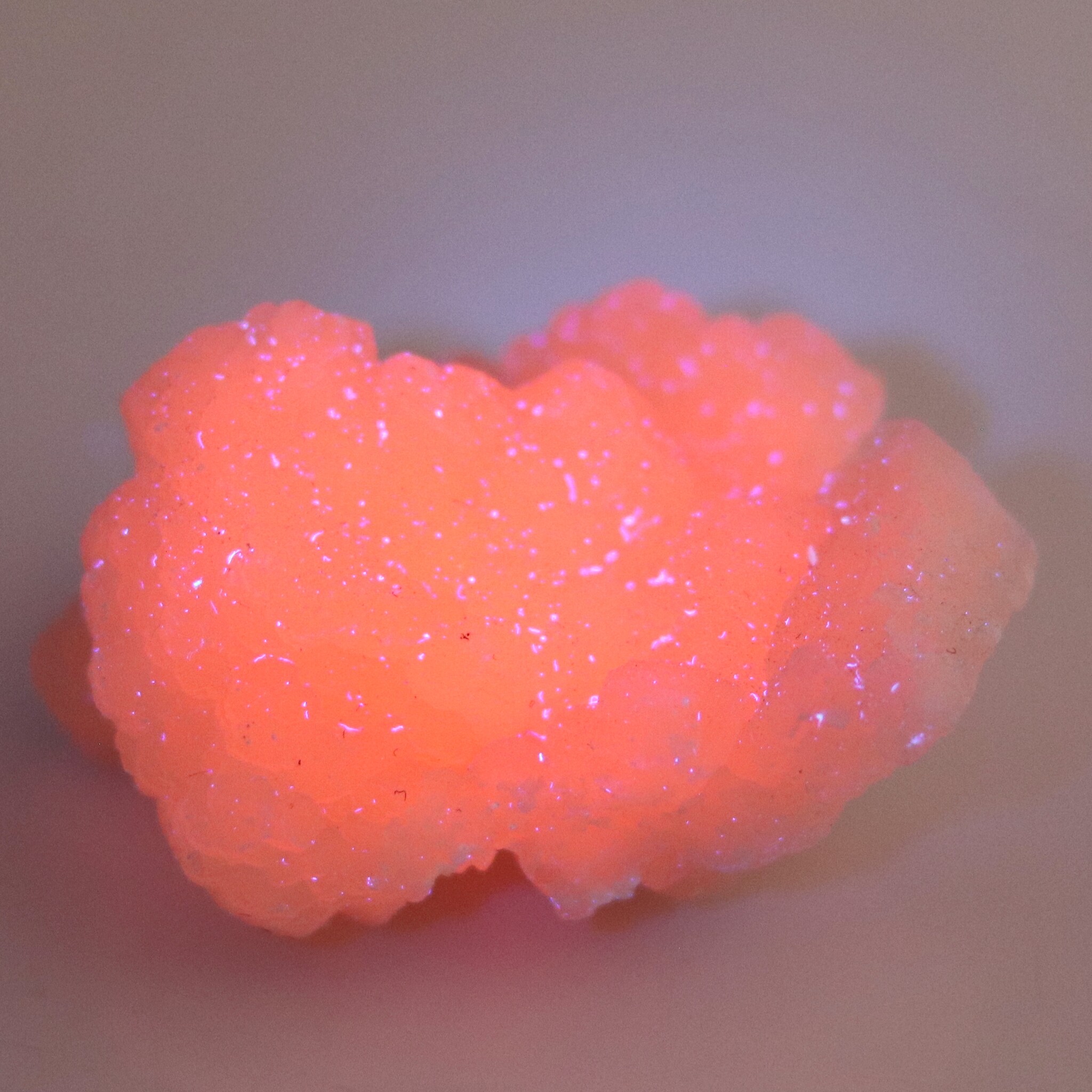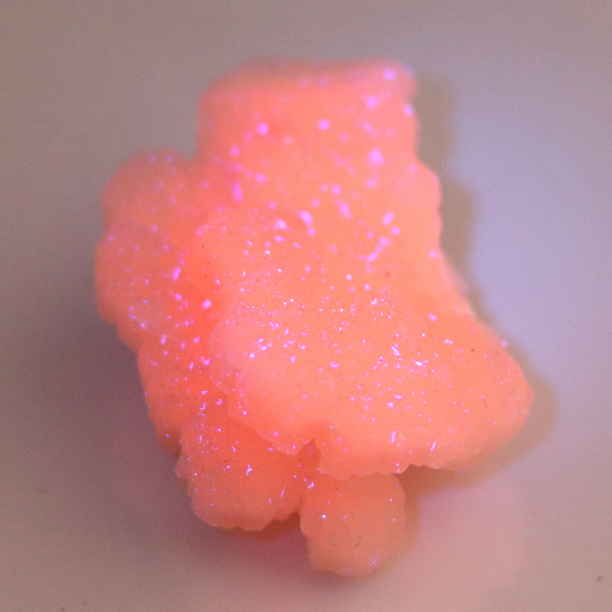 ブラックライト(360mn)下で鮮やかなオレンジピンクに蛍光します。