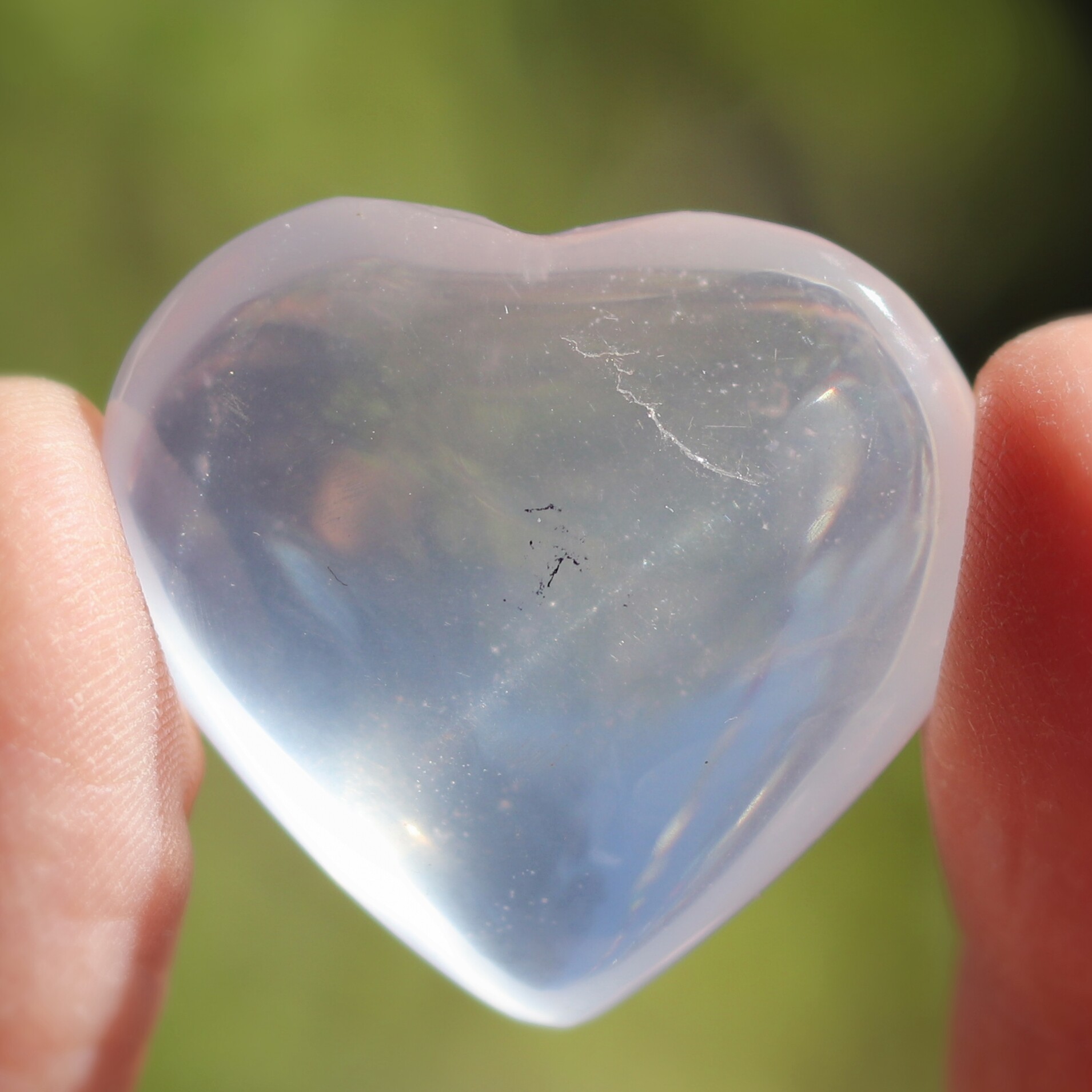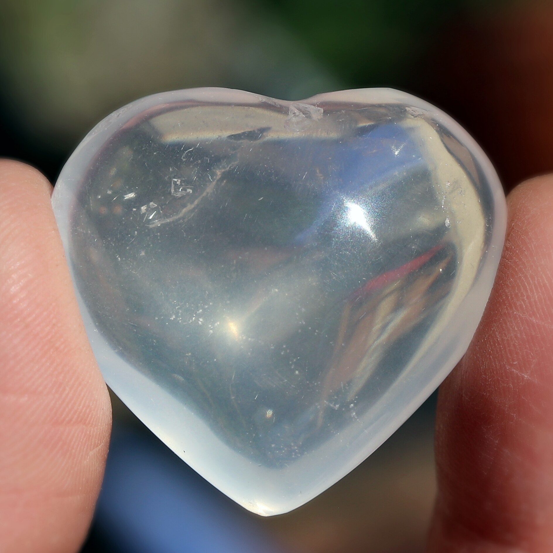 ジラソル(英語 girasol)はアルミニウムを含む水晶です。ある卸先では、フランス語のdura sol(永遠なる太陽)が語源だと言いますが、オンライン辞典で調べた限りでは、イタリア語のgirasole(gira=回る、sole=太陽)を語源としています。後者を日本語風にすると「ひまわり」ということになりますね。どちらにしても、光が降り注いでいるかのような不思議な輝きは、見ていて飽きません。